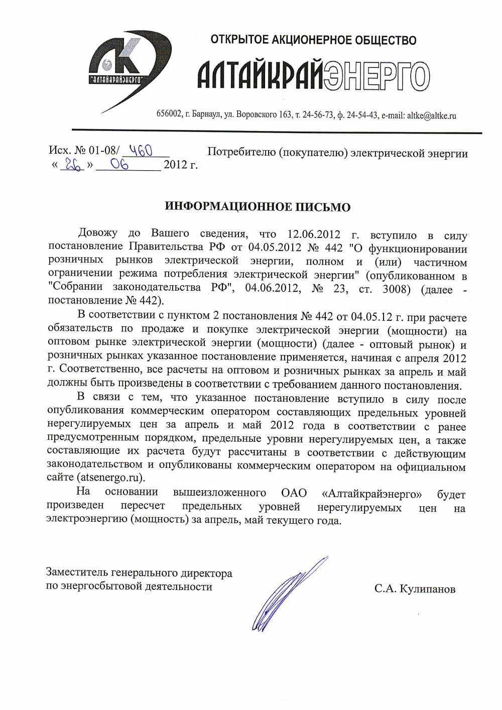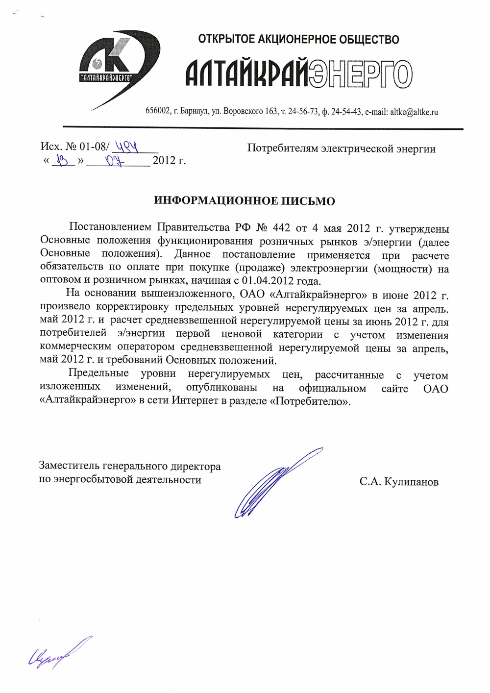 - Положение о взаимоотношениях Алтайкрайэнерго с заказчиками техприсоединения